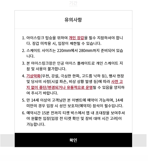 샤넬 아이스링크를 안전하고 즐겁게 이용하기 위해 다음 사항들을 미리 준비하세요.